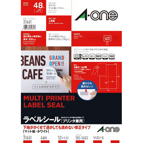 各種プリンタで印刷できる、下地がかくせて透かしても読めない修正ラベルシールです。裏から見ても元の文字が透けて見えないよう特殊印刷を粘着面に施しています。高白色だから仕上がりもキレイ。