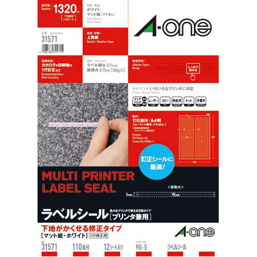 各種プリンタ兼用で印刷できる、下地がかくせる修正ラベルシールです。糊面にグレーの印刷を施しているので下の文字や柄が隠せます。印刷物の一行文字修正に。