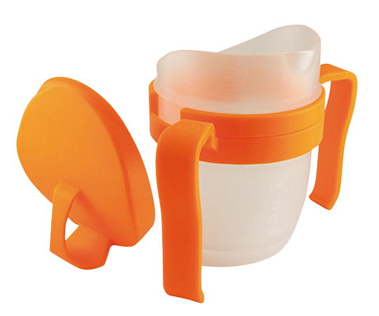 ●鼻に当たらないようにコップの縁がカットされた、頭をまっすぐにしたままでも飲みやすいコップです。