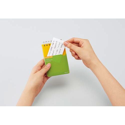 コンパクトサイズなので、スマートに携帯できるツインリングメモ。スタイリッシュな2色使いの表紙ポケット付き。