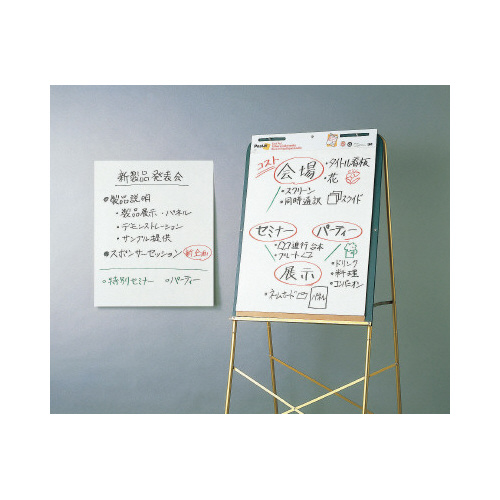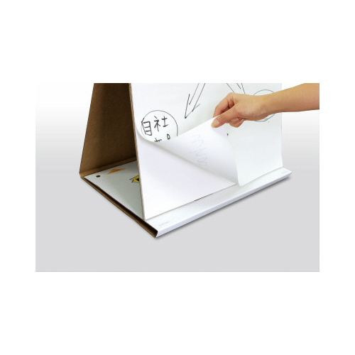 画板サイズの台紙つきパッド。ボードのように書き込むことが出来、1枚ずつはがして自由に掲示できるので、ミーティングやワークショップにおすすめです。持ち運びに便利なテーブルトップタイプ。