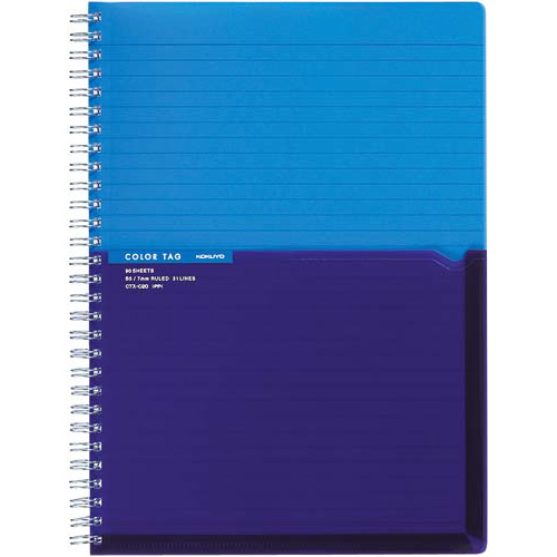 ツインリング<カラータグ>セミB5 A罫90枚 青