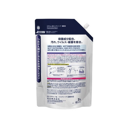 洗浄中へたりにくい「ながもっち泡」。泡立ちがよく長持ちの泡なのに、素早くすすげる。殺菌成分配合。汚れ、ウイルス・細菌を除去。