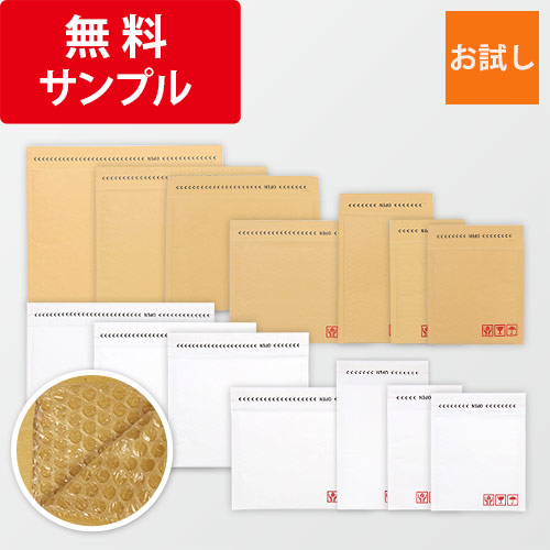 大幅なコストダウンを実現した、業界最安級のクッション封筒のサンプルセット。(14種類・各1枚)