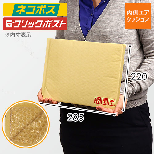 内側にエアクッションが付いており、配送中の衝撃や多少の水濡れから商品をしっかり守ります。