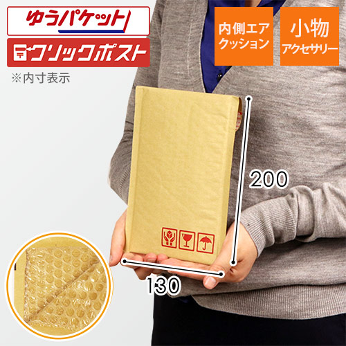 内側のエアクッションが、配送中の衝撃や多少の水濡れから商品をしっかり守ります。