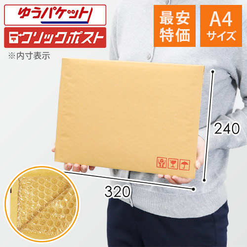 ゆうパケット、クリックポスト、クロネコDM便の最大サイズで、A4が入る仕様です。
