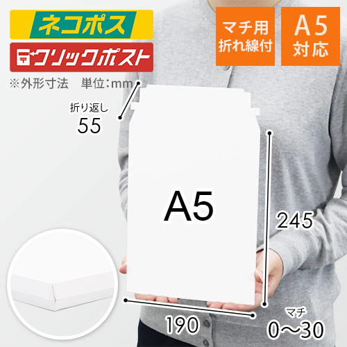 メール便対応のA5サイズ白無地の厚紙ケースです。