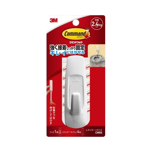 貼付け面をキズつけず、繰り返し使える。重いものも掛けられる大型2.4kg用です。