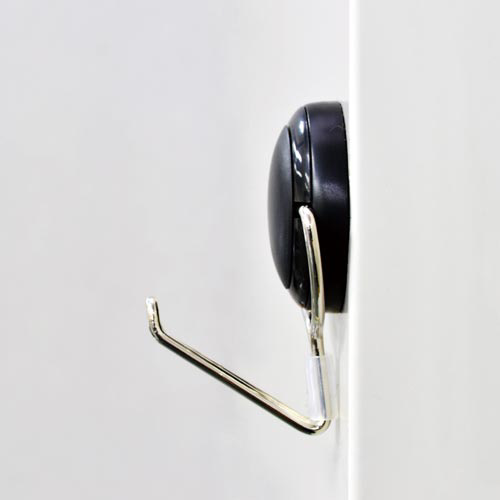 裏面に独自開発した高性能滑り止めシート「R-FIX」を使用している強力マグネットフック。コンパクトサイズで滑り止めにより設置面を傷つけない。フック幅40ミリのワイドサイズなので鞄の持ち手も傷めません。