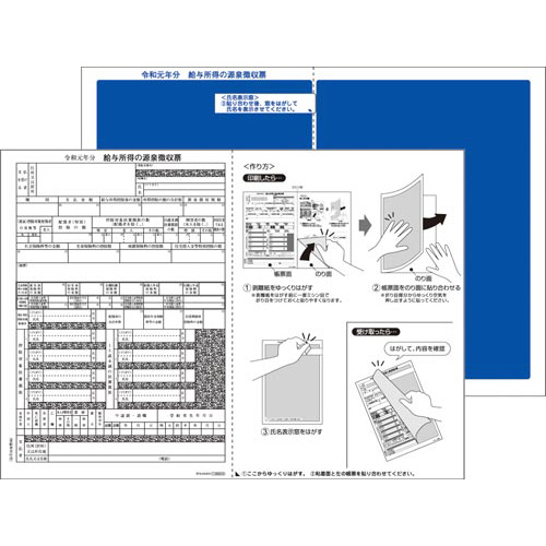 電子申告をご利用の方に最適な受給者交付用の密封式タイプ。密封式なので封筒詰めの手間いらずで作業効率アップ!そのまま受給者へ渡せます。密封されているので個人情報をしっかり保護できます。