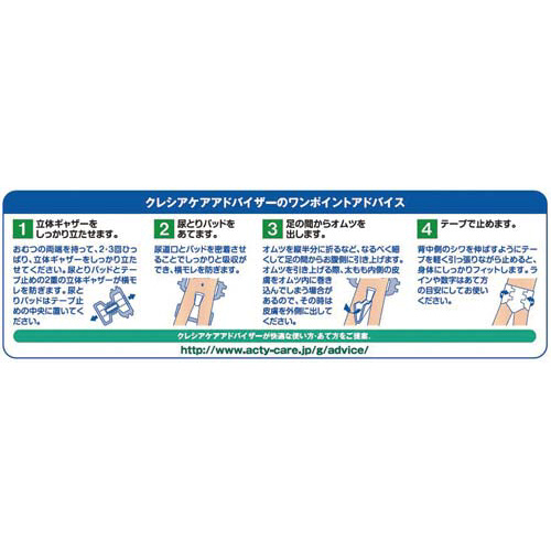 耐久性のあるテープで何度つけ外してもしっかりフィット。ダブルウエストギャザーで背モレ、腹モレを防止。布感覚の通気性シートでムレ解消。しっかり立ち上がる立体ギャザーで横モレをガード。医療費控除対象品。
