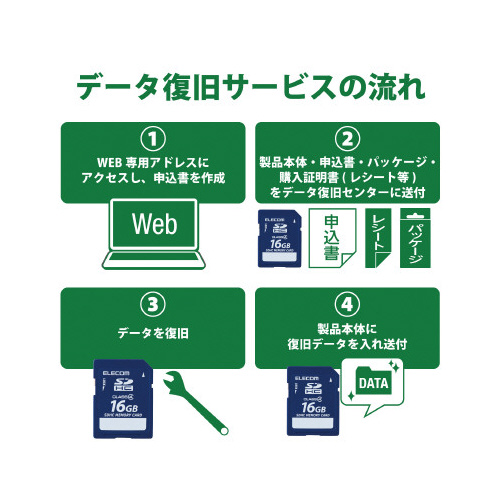 万が一の時でも無償でデータを復旧!1年間の保証期間内に1回限り無償でデータ復旧サービスを利用できるSDHCメモリカードです。