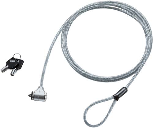 ワイヤーを柱や机の脚等に巻きつけて、多くのパソコンで採用されているPC固定用の3×7mmの長方形のスロットに本製品をとりつけてロックすることで、大切なパソコンの盗難を抑止します。