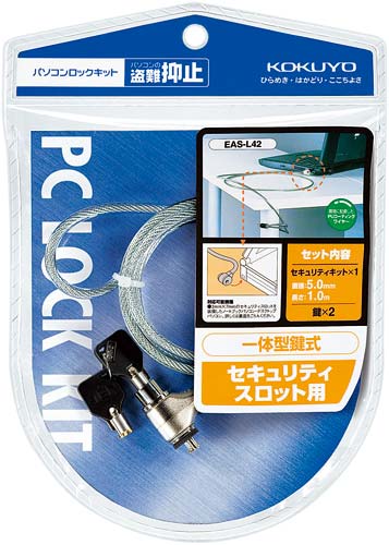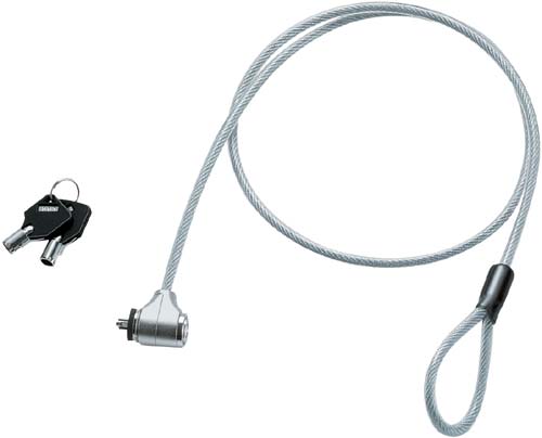 ワイヤーを柱や机の脚等に巻きつけて、多くのパソコンで採用されているPC固定用の3×7mmの長方形のスロットに本製品をとりつけてロックすることで、大切なパソコンの盗難を抑止します。