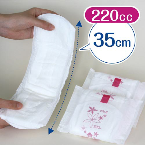 超強力消臭シートを新採用し、ニオイ安心!・お肌にやさしい素肌と同じ弱酸性のやわらかシート・安心の吸収力・立体ギャザーとサイドギャザーのダブルギャザーで横モレを防止・かわいい花柄エンボス・全面通気性