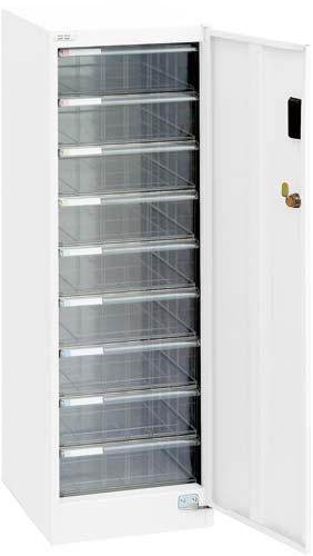 セキュリティ性の高い鍵付きタイプがお買い得!A4サイズの鍵付き扉のフロアケース。分類シール付き。