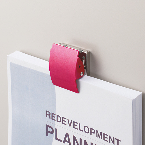 ●背面に搭載したホールドラバー(ゴム素材)が、スチール面にフィット。分厚い書類を挟んでも、壁面からのずり落ちを防止し、しっかりキープします。