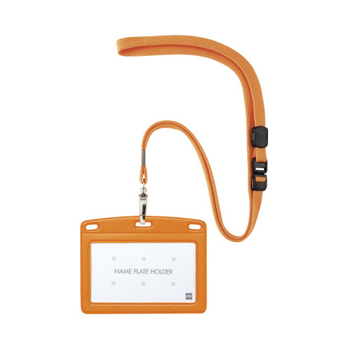 吊り下げ名札 レザー調 ヨコ名刺 橙