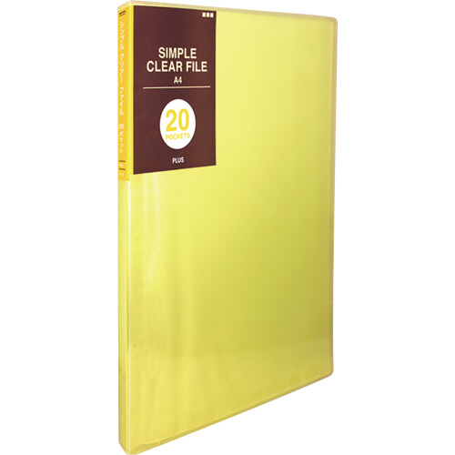 シンプルクリアーファイル A4タテ 20ポケット 背幅10mm イエロー 1冊