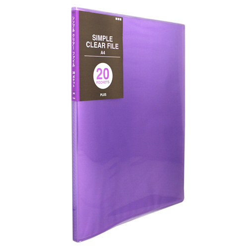 シンプルクリアーファイル A4タテ 20ポケット 背幅10mm パープル 1冊