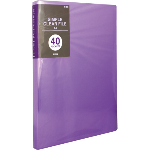 シンプルクリアーファイル A4タテ 40ポケット 背幅20mm パープル 1冊