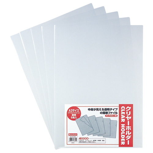 クリヤーホルダー A3 クリヤー 1パック(5枚) 【5-8営業日遅延】