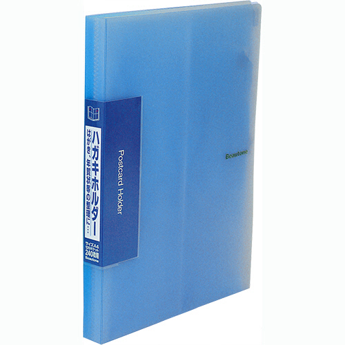 ハガキホルダー A4タテ 120ポケット ブルー 1冊
