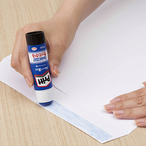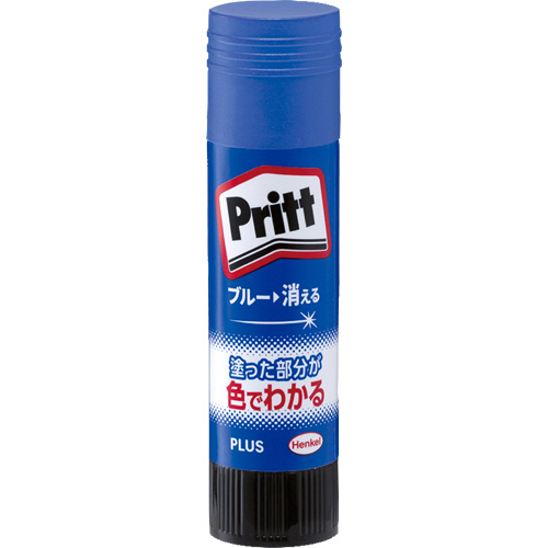 ●ブルーののりで、塗った部分が見えるミディアムサイズのスティックのり。塗り残しやはみだしの心配なく、確実にのりづけができます。しばらくすると色は消えます。