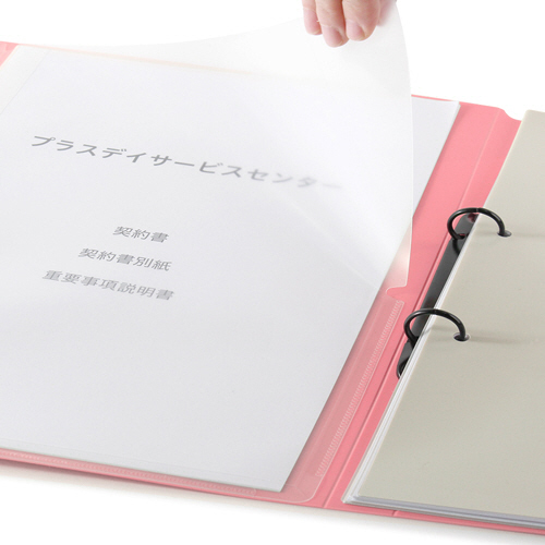 利用者様の個人情報の管理に好適な、耐久性も高い樹脂製のリングファイル。
