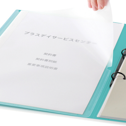 利用者様の個人情報の管理に好適な、耐久性も高い樹脂製のリングファイル。