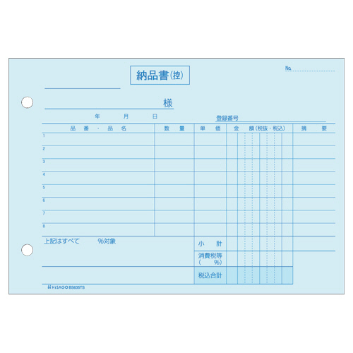 ●税率を記入できるようになっているので、8%、10%どちらにも対応できる納品書です。
