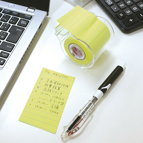 メモック ロールテープ(ノート) 蛍光紙 罫線入 つめかえ用 50mm幅 レモン 1巻