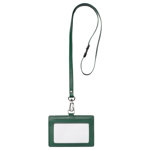 本革製ネームカードホルダー ヨコ型 ストラップ付 グリーン 1個 【5-8営業日遅延】