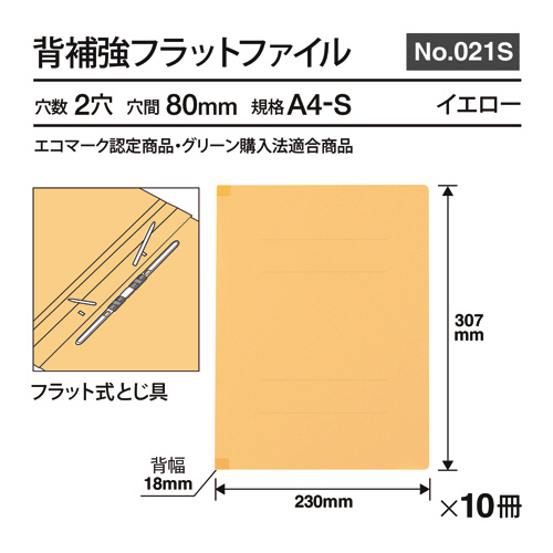●フラットファイルA4タテ、背幅18mmのイエロー10冊入です。