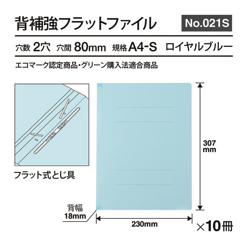 ●フラットファイルA4タテ、背幅18mmのロイヤルブルー10冊入です。