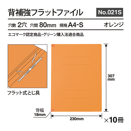 ●フラットファイルA4タテ、背幅18mmのオレンジ10冊入です。