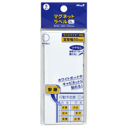 マグネットラベル 3L タテ52×ヨコ123×厚さ0.6mm 1パック(5枚)