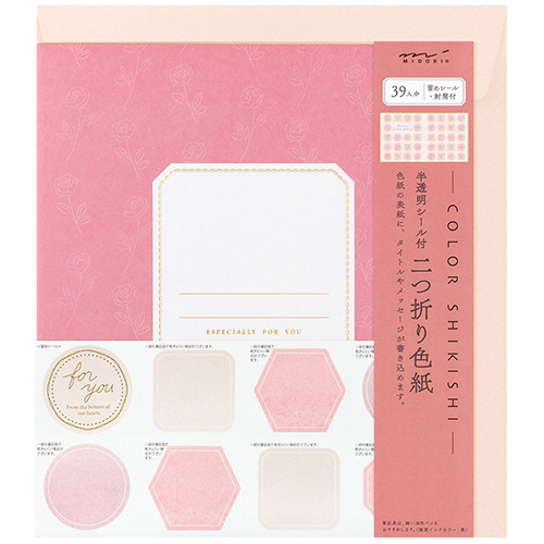 ●封筒付できちんと贈れる。半透明・ピンクの寄せ書きシール39枚付の二つ折タイプ。2枚セットです。
