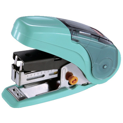 軽い力で「サクリ」ととじるホッチキス。予備針ポケット付きで連続作業にも使いやすい。