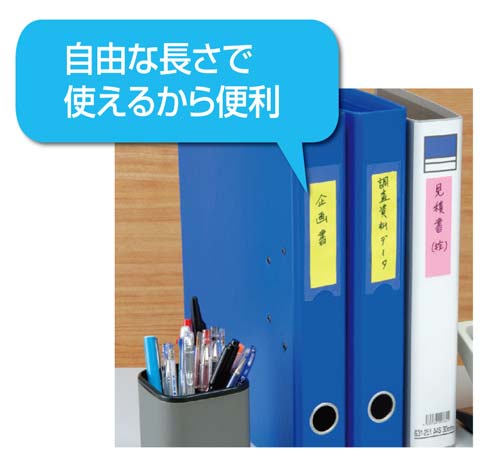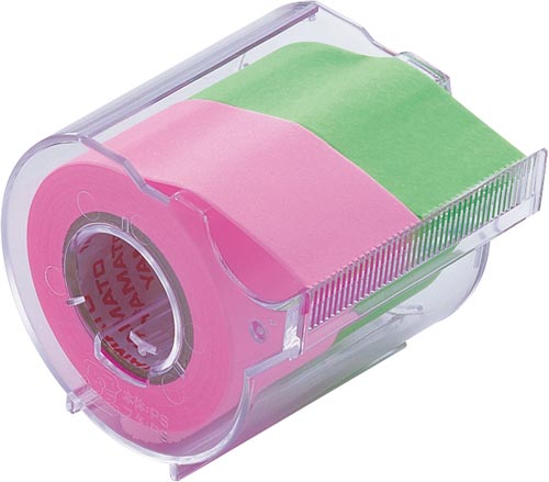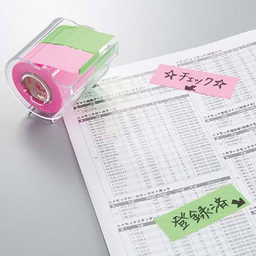 いろいろなシーンで便利に使える、貼ってはがせる全面粘着ふせん「メモックロールテープ」。ご家庭で、職場で、アイデアに合わせてお使いください。