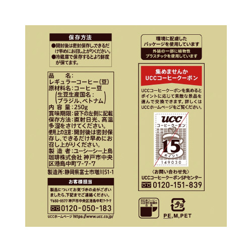 「UCC」の技術力と惜しみない手間ひまにより、コーヒーの奥深さが味わえる本格コーヒー。「単品焙煎」で豆の個性を最大限引き出しました。挽く時間と香りを楽しめる炒り豆タイプ。甘い香りと風味豊かなコク。