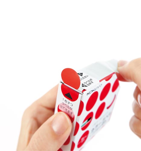 しっかり閉じられるフタ差込式。従来の2倍の厚みを持つ段ボールを使用し、3段の積み重ねが可能です。コクヨのしっかり貼れるカラーラベル丸15mm赤付きのお得なセットです。