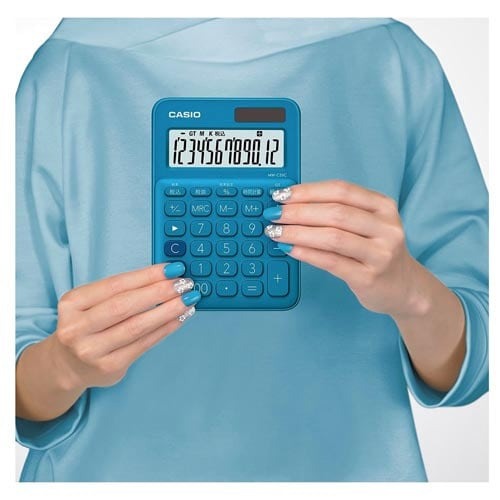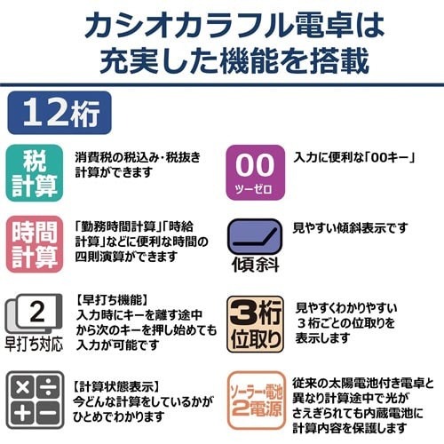 キュートなカラーがとってもかわいい!カジュアルな12桁電卓!時間計算機能もついています!