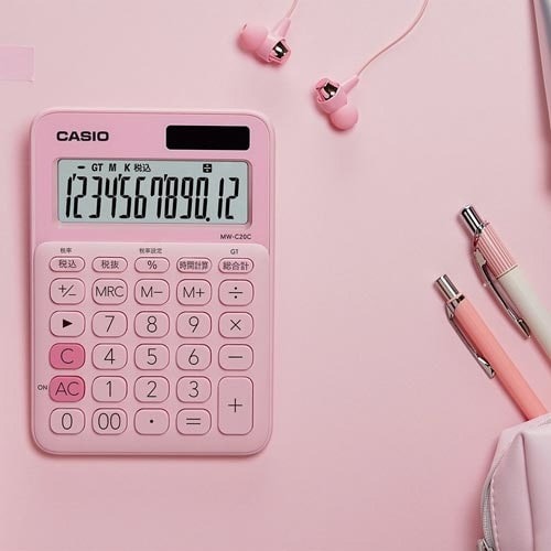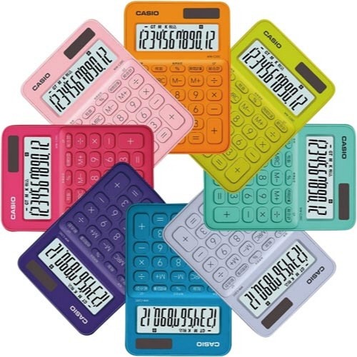 キュートなカラーがとってもかわいい!カジュアルな12桁電卓!時間計算機能もついています!