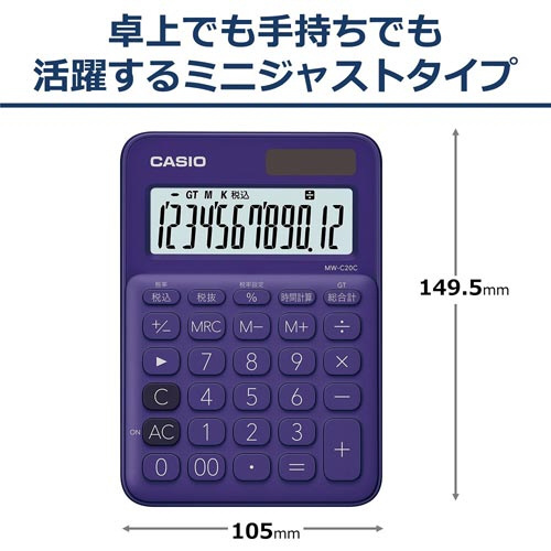 ポップでキュートなカラーの、カジュアルに使える電卓です。手持ちでも卓上でも使いやすいミニジャストタイプです