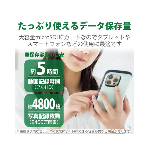●ご注意/microSDHCカードはmicroSDHCロゴが表示されている機器でご使用できます。従来のmicroSDカードのみに対応した機器ではご使用できません。microSDXCカードは、SDXC対応機器で使用可能です。