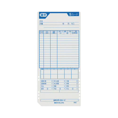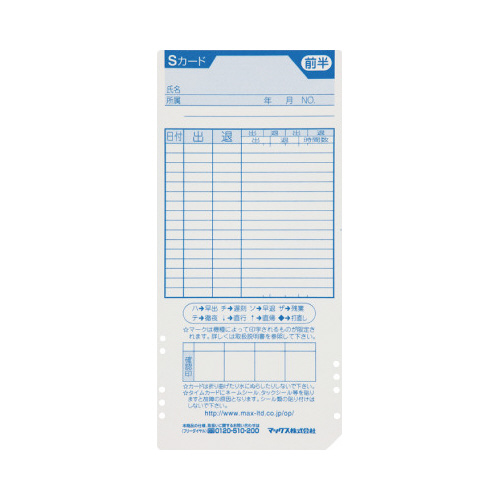 マックスの純正タイムカード。別売りの赤色と組み合わせて社員、パート等使い分けが可能です。