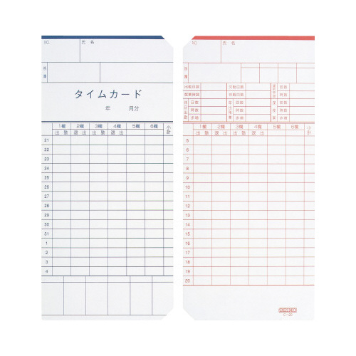 20日締め用・日付印刷あり。セイコータイムレコーダー用の純正タイムカードです。