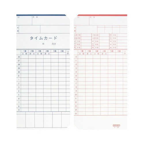 25日締め用・日付印刷あり。セイコータイムレコーダー用の純正タイムカードです。